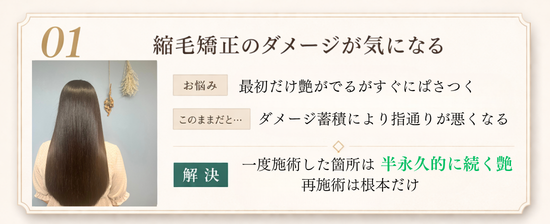 ご新規さまは「髪質診断」から該当メニューへスムーズにご案内。